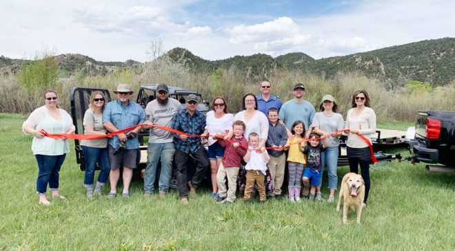 James Ledford and Amy Sanger Ledford are the new owners of River Camp RV Park and celebrated with a grand opening. They are pictured here with Stephanie Kobald and Emily Mohr from the Meeker Chamber of Commerce, along with visiting guests Mark, Heather, Jared, Marissa, Jason and children;...